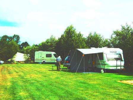 rustige camping met een prima grasmat en 6 amp. stroom. Er is een groot veld met ruime plaatsen (15), en een kleiner veldje voor wat meer privacy. |